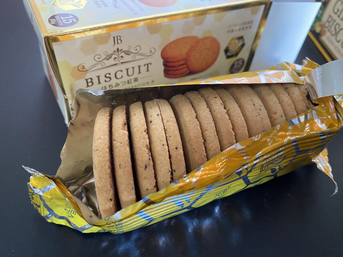 ビスケット、ほろっほろサクサク系。はちみつと紅茶がいい仕事している美味しいビスケットでした。