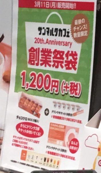 発売日は2019年3月11日って書いてあるので注意ください。今までサンマルクの福袋予告ってあったかな???店舗は発売後に看板出していたきがするので、今回は珍しいかも?