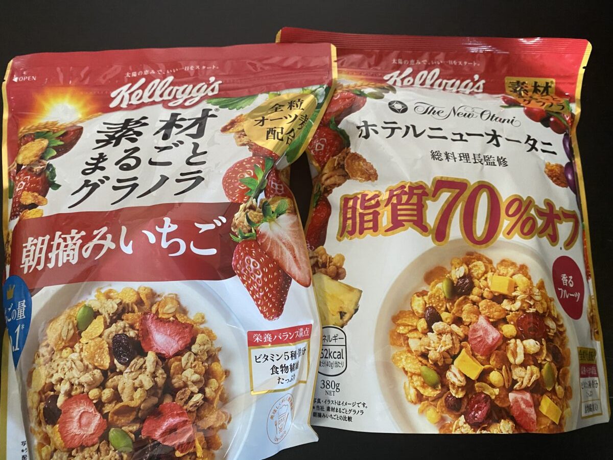- ケロッグホテルニューオータニ総料理長監修糖質70%グラノラの味が異なる