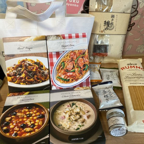 バッグの中にはディーン・アンド・デルーカのパスタソースやスープ、パスタなどが入った福袋でした。