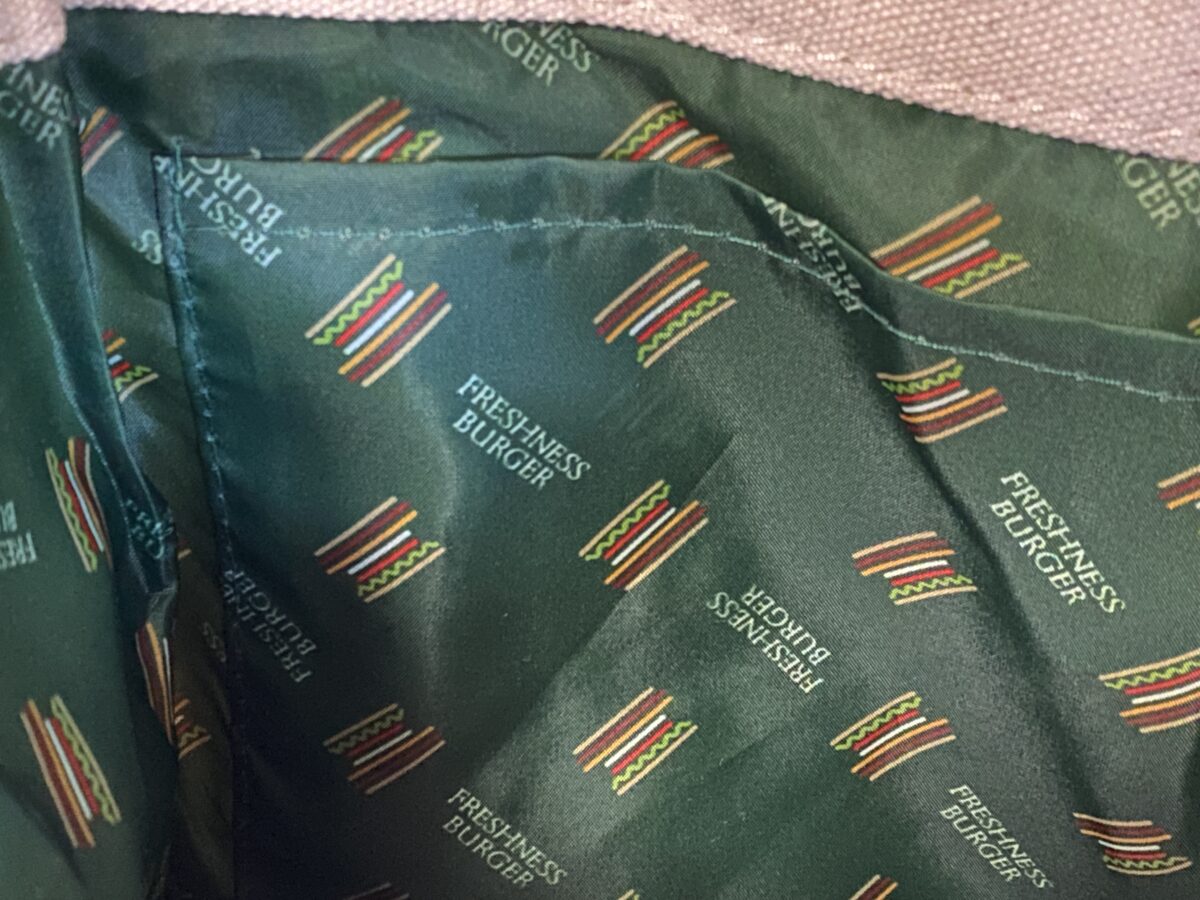 さらに、裏地にはフレッシュネスバーガーのバーガーがデザインされていて、とってもかわいい!