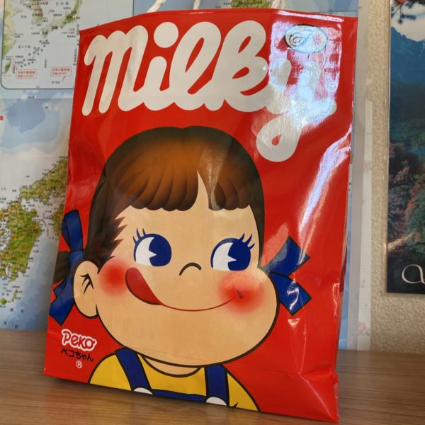 不二家といえばペコちゃん。紙袋にはペコちゃんが描かれてました