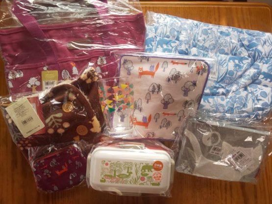 グラス、トートバッグ類、お弁当箱、タオルハンカチ、ポーチなどが入ってます。