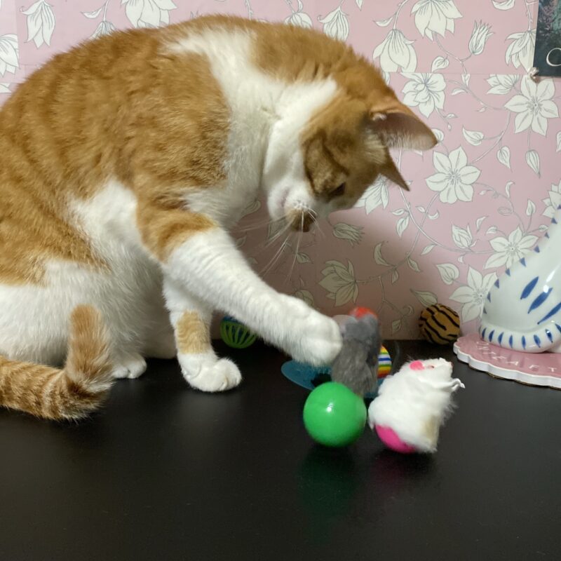 よく買う猫じゃらしのやつは500円くらいするので、おもちゃは1000円相当くらいするのかな?
