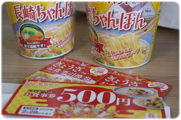 リンガーハットのお食事割引券500円×6枚が福袋にはいってました。