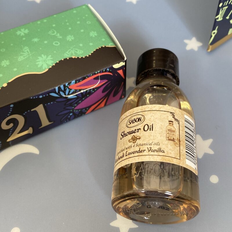 SABONのアドベントカレンダー2023、21日目はシャワーオイル パチュリ・ラベンダーバニラ (50mL)