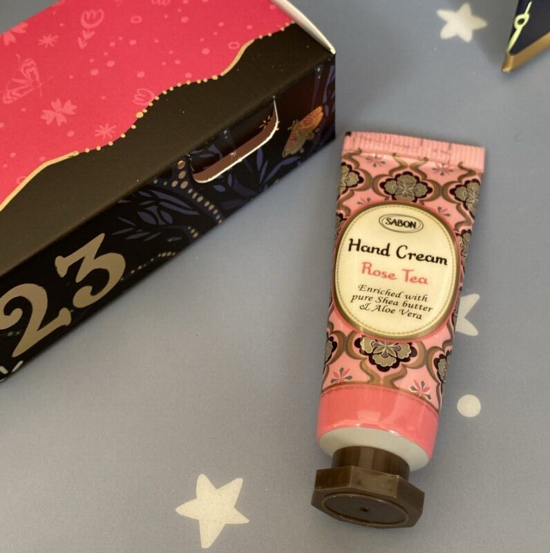 SABONのアドベントカレンダー2023、23日目はハンドクリームローズティが入ってました