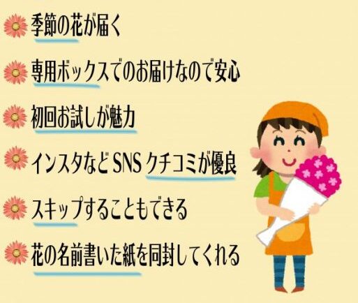 花の定期便はいろんな会社が提供していますが、私は以下のような特徴を重視しました