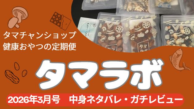 タマチャンショップのオサカーナにハマり、ほかのおやつも食べてみたいと思い、タマチャンショップのおやつ定期便「タマラボ」を2026年~取り始めましたー!