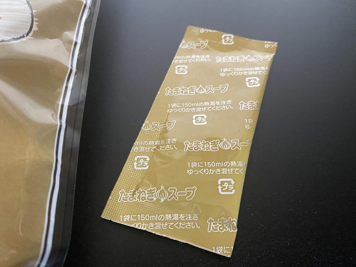 私が楽天で買ってる玉ねぎスープと比較するとコンパクトな袋。二分の一くらいの大きさではないでしょうか。