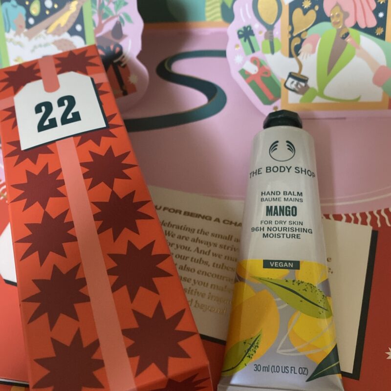THE BODY SHOPアドベントカレンダー「ラブ」、22日目はマンゴーのハンドクリームが入ってました。